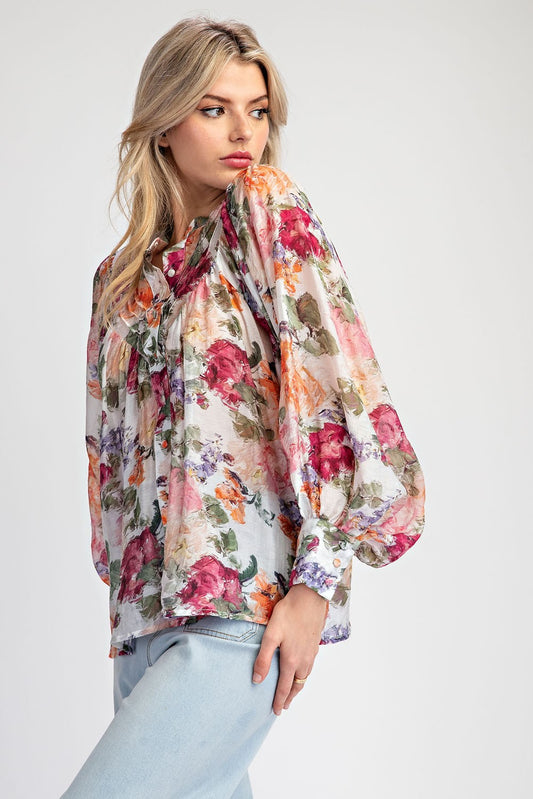 Vintage Ruffle-trim Floral Embroidered Blouse