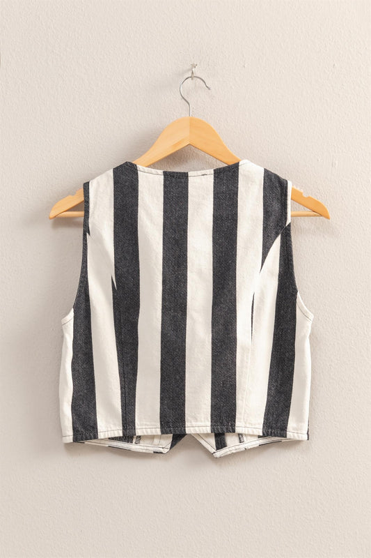 Woven Striped V-Neck Sleeveless Vest