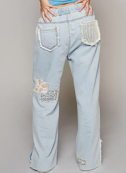 Patchwork & Crochet Net Wide Leg Side Slit Pants