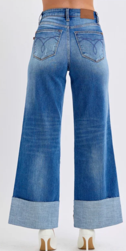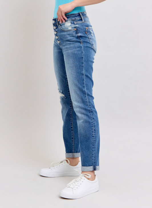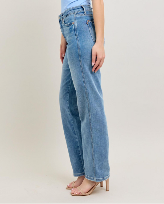 Judy Blue Mid Rise Frayed Hem Straight Leg Jeans
