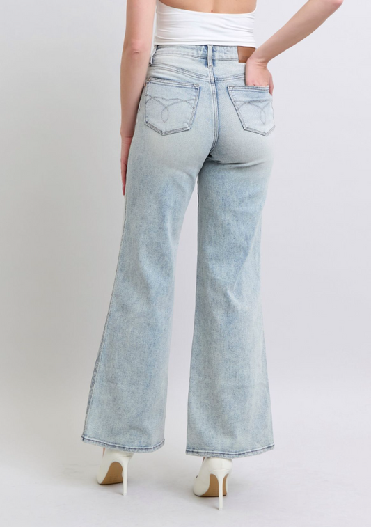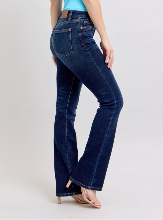 HW Tummy Control Back Pocket Embroidered Bootcut Denim