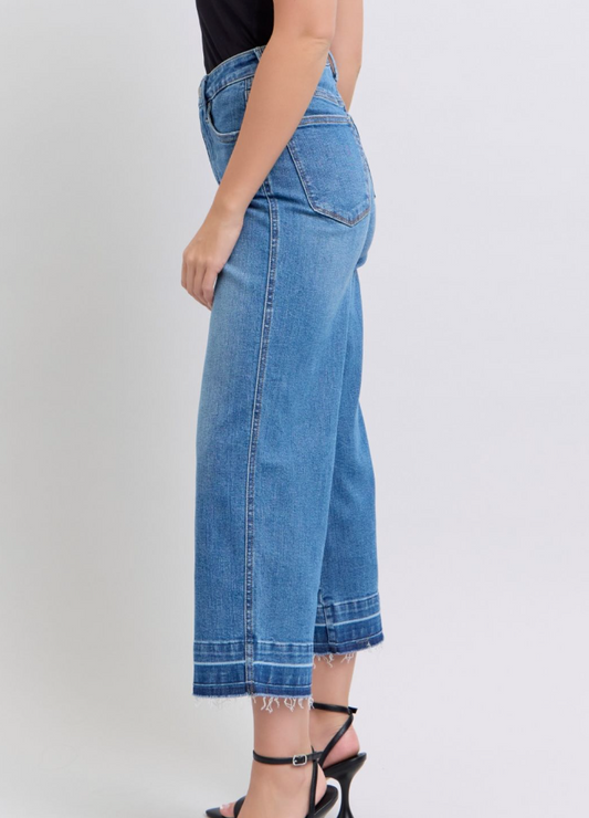 High Waist Rigid Magic Destroy Hem Crop Wide Jeans