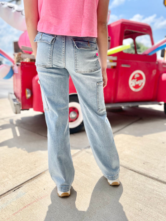 High Waist Wide Leg Light Wash Cargo Judy Blue Jeans