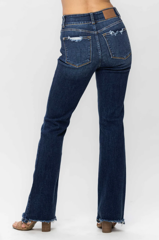 High Waist Fray Hem Bootcut Denim Judy Blue Jeans