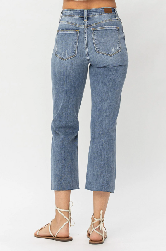 Judy Blue Mid Rise Frayed Hem Straight Leg Jeans