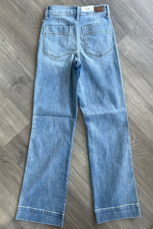 Mid Rise Wide Leg Light Wash Denim