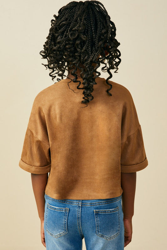 Girls Horseshoe Patched Drop Shoulder Suede T-Shirt