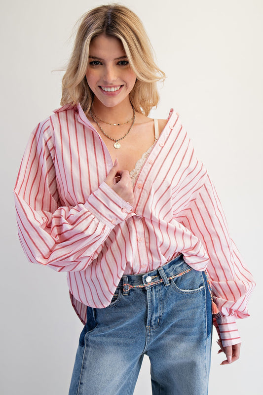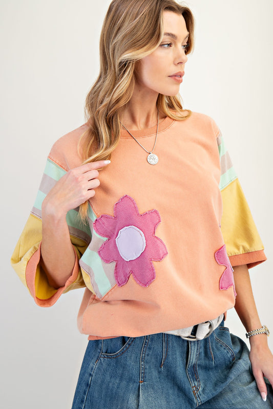 Stripe Mixed Ruffle Sleeve Top With Leopard Letter