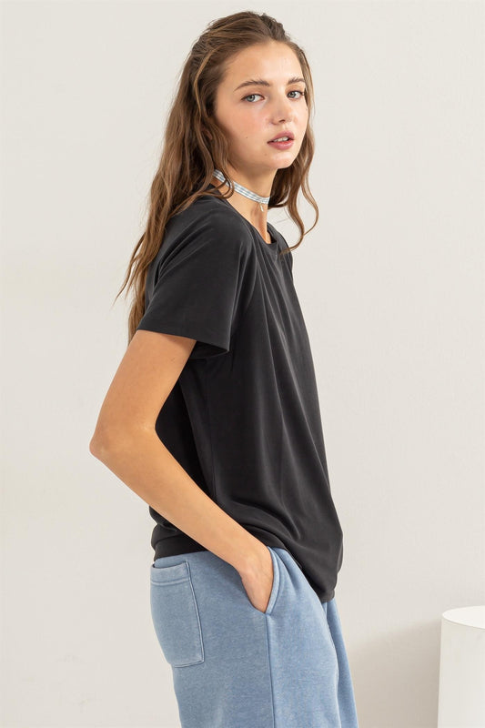 Brushed Microfiber Long Sleeve Round Neck Tee