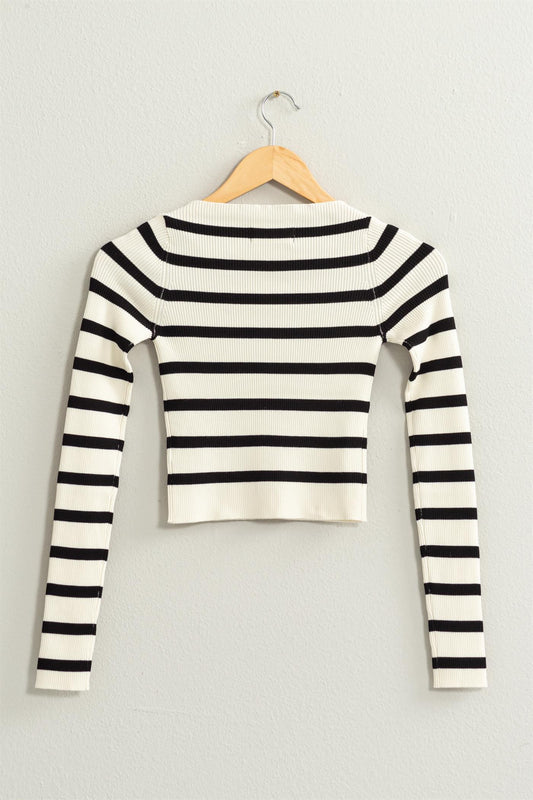 Striped Boatneck Long Sleeve Crop Top