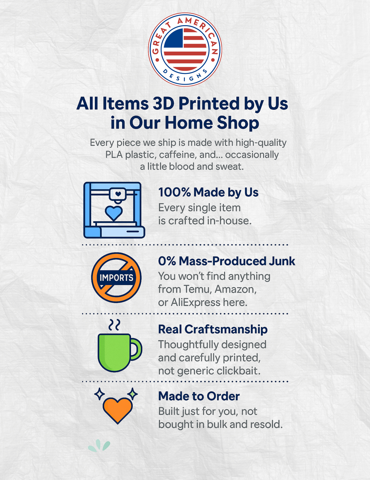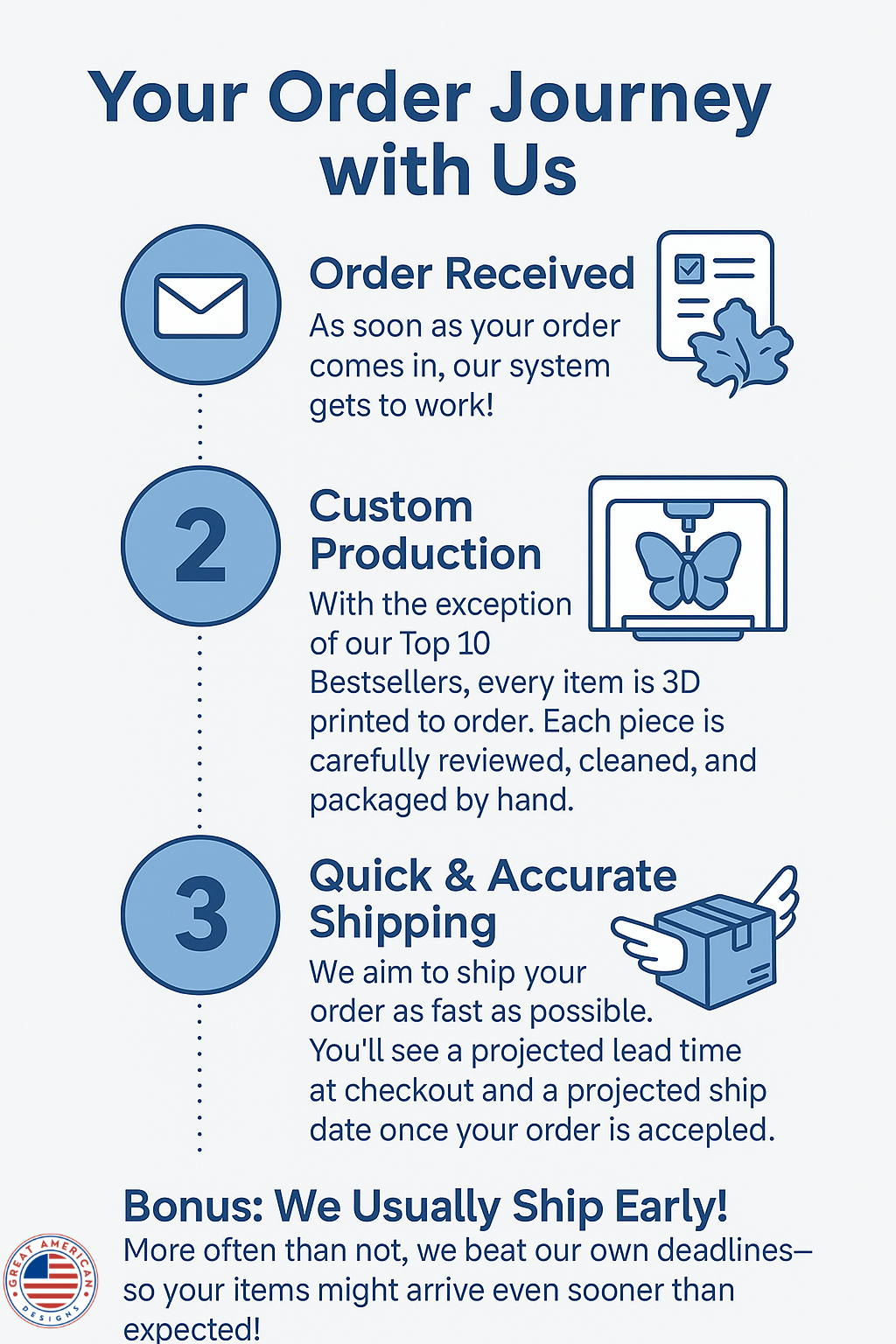 Please note that dual- and tri-color filaments and rainbow filaments will look different every time. Your model is made to order, & there is random variation on each dual color print; similarly, the placement of the colors on a rainbow print will depend on where we are in that roll of filament. As with all of my designs, I strongly advise that the printed models are not to be handled by children under 3 without proper supervision.