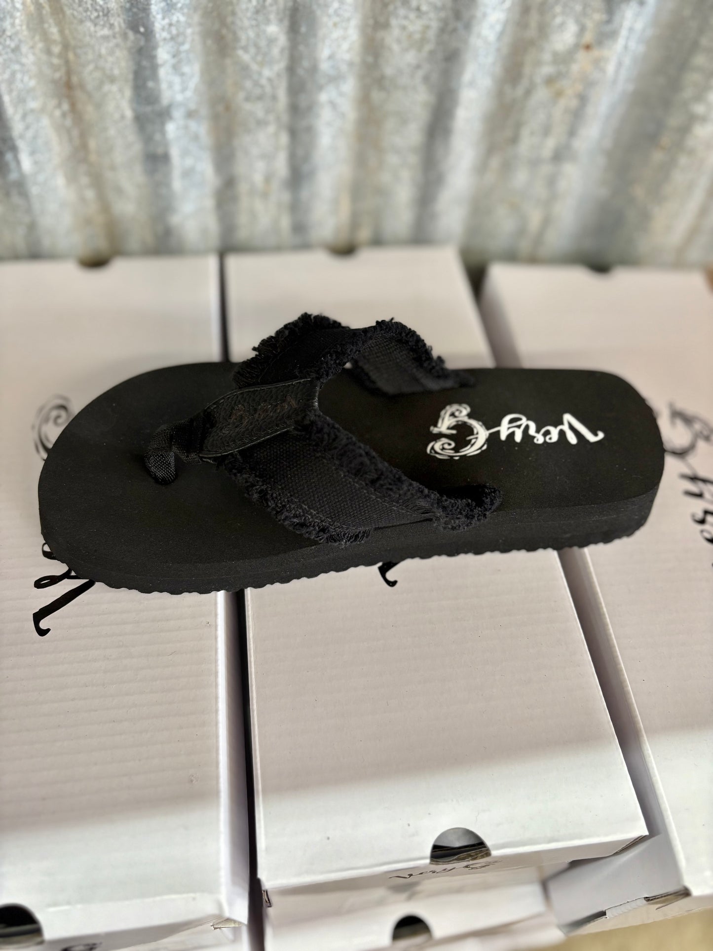 Step into summer with these Black Fringe Flip Flops featuring playful fringe detailing, a cushioned sole, and easy slip-on style. Perfect for beach days, poolside lounging, or adding a fun twist to your casual outfits.TRUE to Size