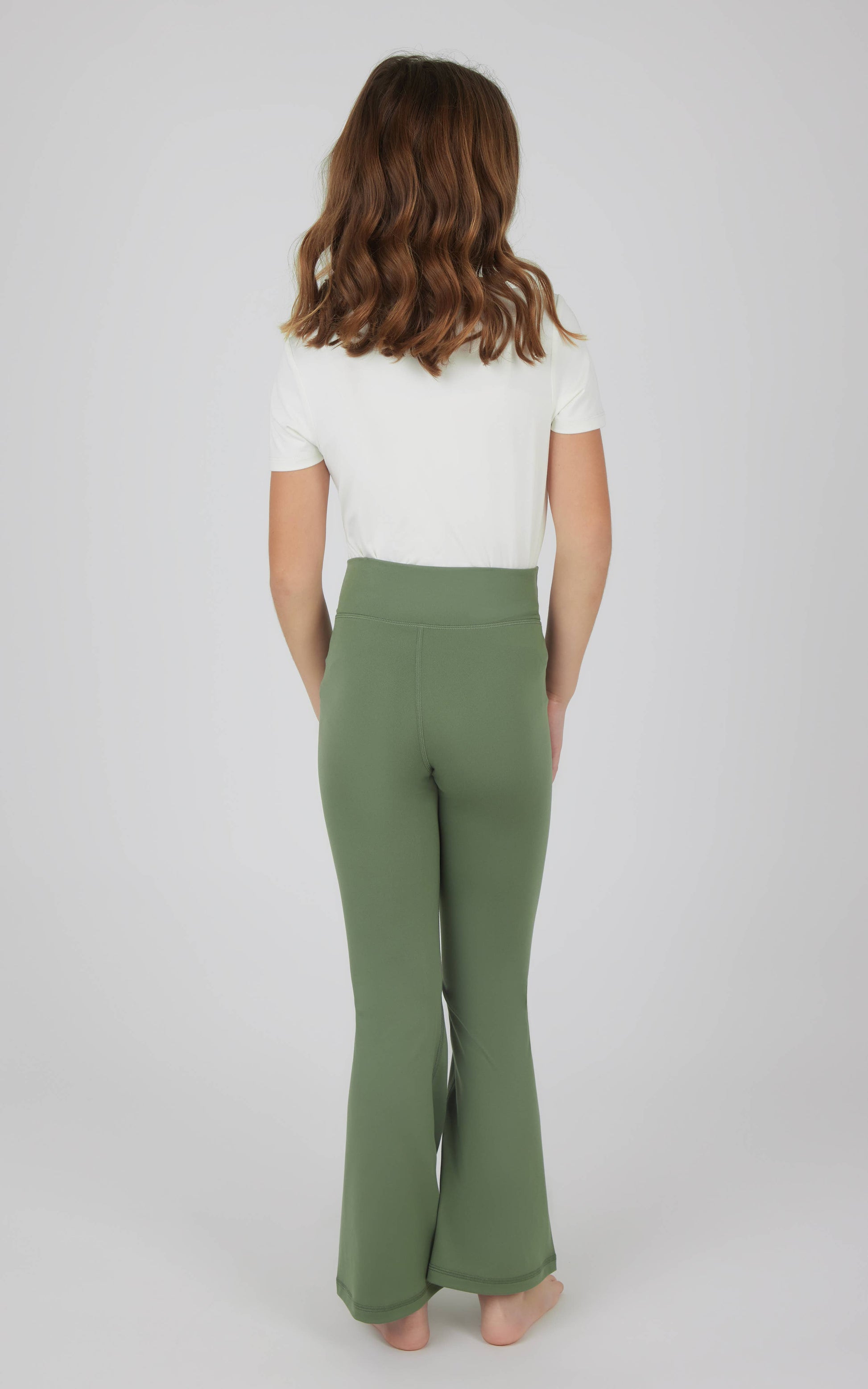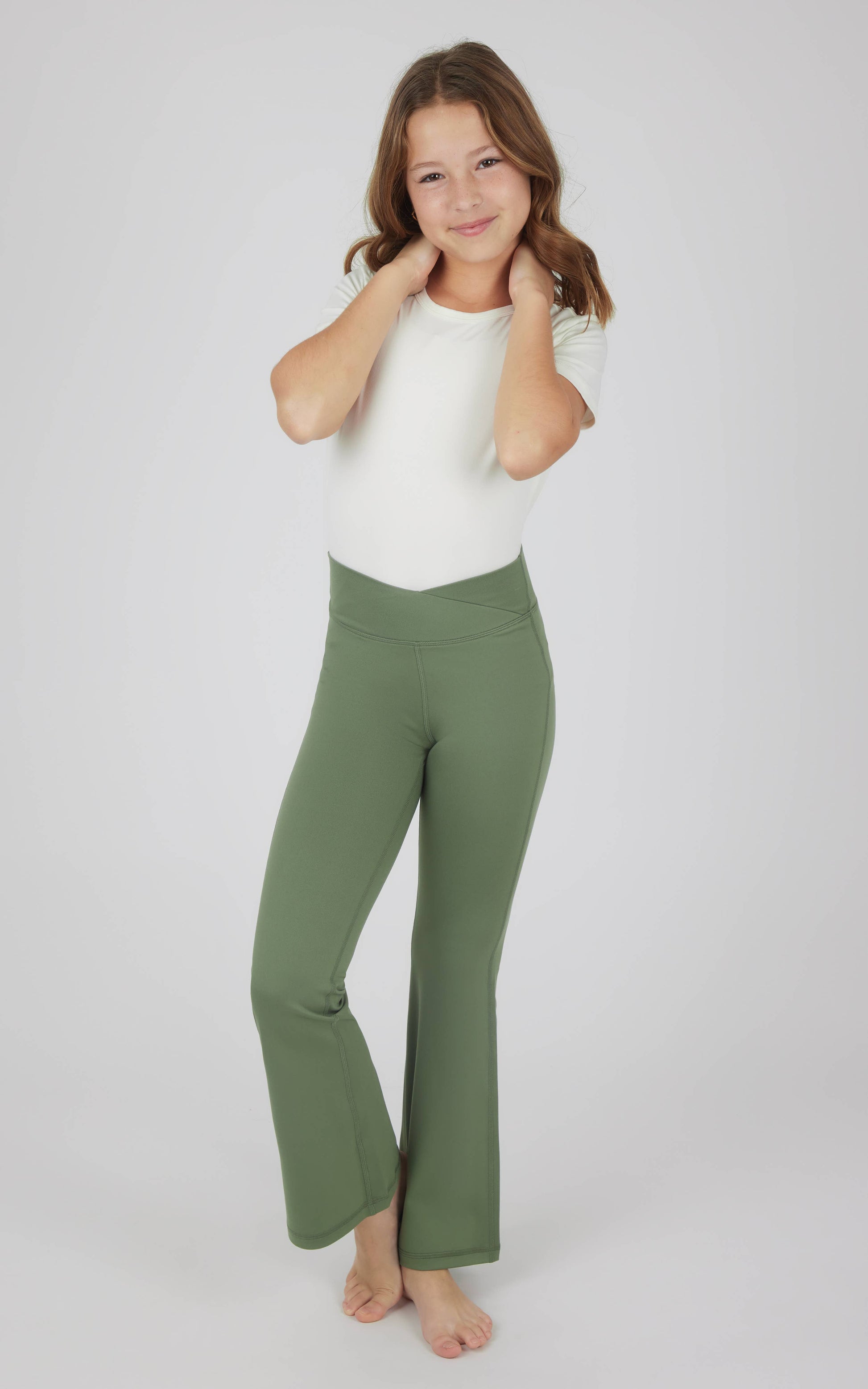 These Girls' Interlock Crossover Flare Pants combine comfort and style with a flattering crossover waistband and a soft, stretchy interlock knit. The full-length flared leg adds a trendy touch — perfect for school, dance, or everyday wear.
