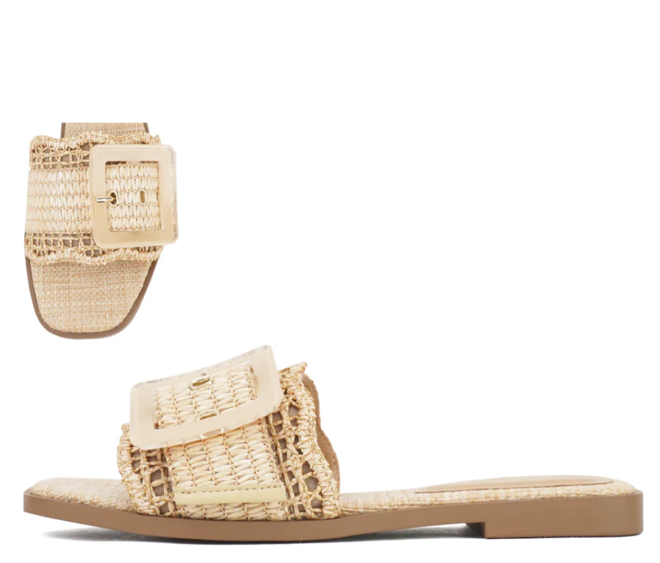 Nayan Raffia Buckle Slides