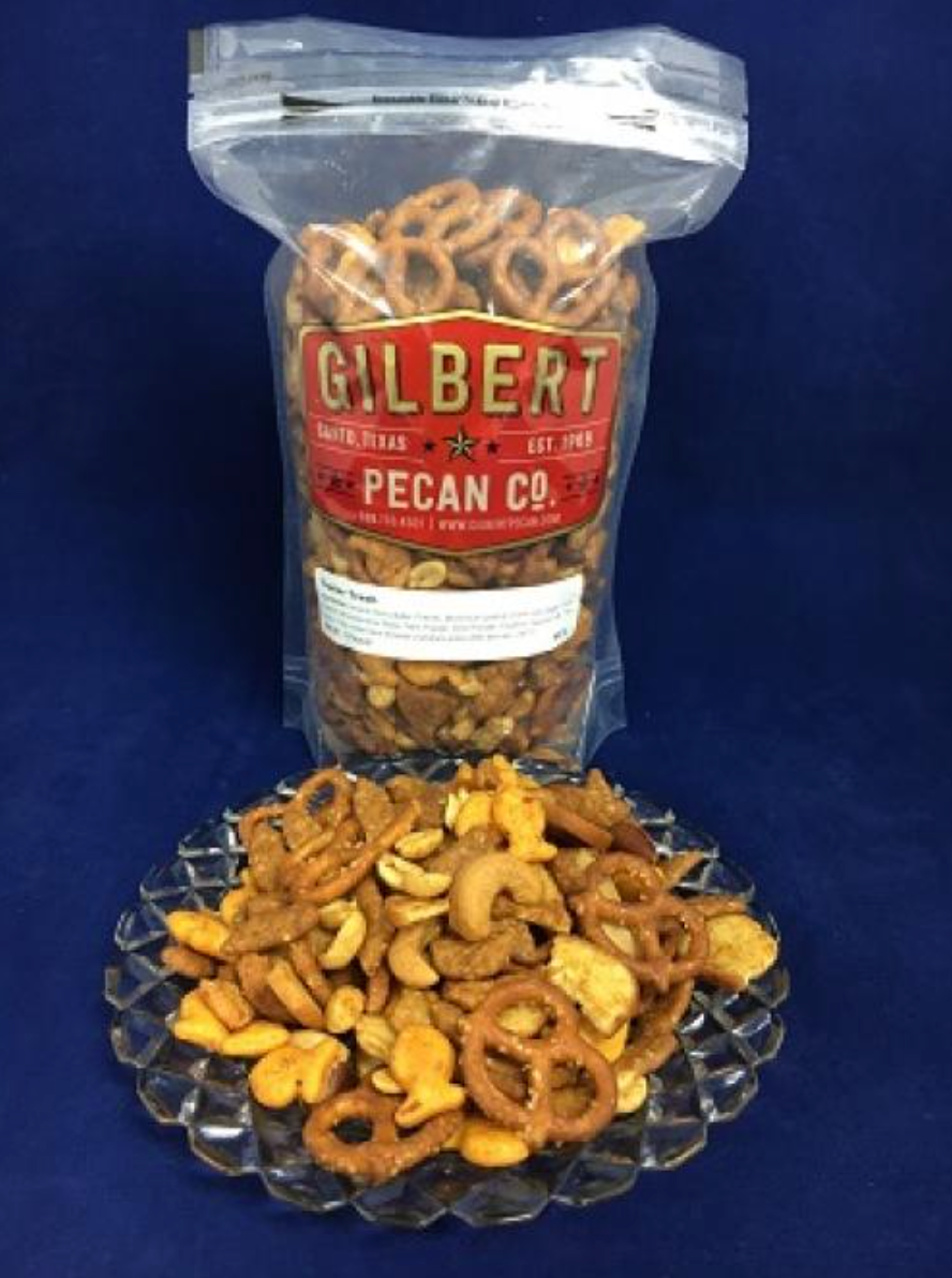 Our Best Selling Party Mix Ever! Ingredients: Sesame Sticks, Butter, Pretzels, Pecans, Mixed Nuts (peanut oil and salt), Bagel Crisps, Goldfish, Worcestershire Sauce, Garlic Powder, Onion Powder, Cayenne, Season Salt. This produce may contain trace amounts of peanuts and/or other tree nuts.